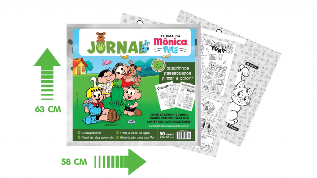Somos o único jornal pet com licenciamento exclusivo da Turma da Mônica, com passatempos, atividades e desenhos para colorir com temas exclusivos da turminha mais amada do Brasil.